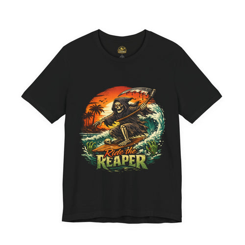 Ride the Reaper Surf T‑Shirt — Grim Reaper Surfing Graphic Tee
